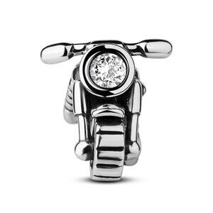 This 925 sterling silver stamped articulating wheel motorcycle Bike Big hole euro charm is a unique and stylish addition to any charm bracelet. Crafted from sterling silver, this charm features intricate detailing and a cubic zirconia stone for added sparkle. The charm is perfect for motorcycle enthusiasts or anyone looking to add a touch of edgy flair to their jewellery collection. Perfect for pairing with other charms or wearing on its own, this piece is sure to make a statement.