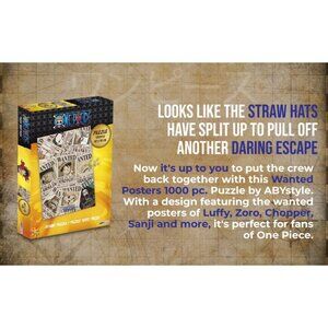 NWOT - ABYstyle One Piece Anime Wanted Poster Jigsaw Puzzle 1000 Pcs Featuring Luffy, Zoro, Chopper & Sanji Anime Manga Gift