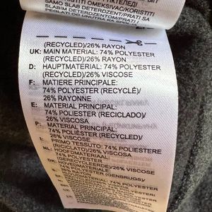 74% recycled polyester, 26% viscose
