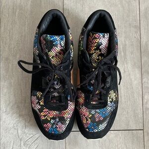 This Rare Limited Edition of the adidas Originals ZX 700 displays a black base, but works in plenty of multicolored, floral printed love along the ankle, tongue and toe. Perfect addition to any shoe collector or fashion statement piece. Stand out and be Proud!