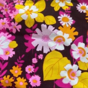 Multicoloured floral pattern : Pink, orange, yellow, purple, white.