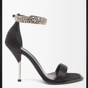 NWOT ALEXANDER MCQUEEN Crystal Strap Sandal in Black/Crystal/Silver (41.5)