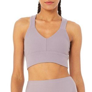 Like our Lavish Bra? Meet the Emulate Bra, a new go-to for studio and street. It’s ribbed with a chevron design, V-neck, crisscross straps at back and medium support. A total win on and off the mat.