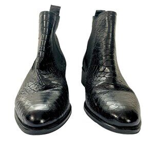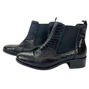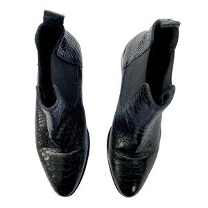 NWOT ATELIERS BLACK BRONX CROCO SNAKESKIN CRACKED LEATHER CHELSEA ANKLE BOOTIES