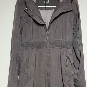 NWOT ATHLETA Hooded Windbreaker Trench Taupe Gray Sz S