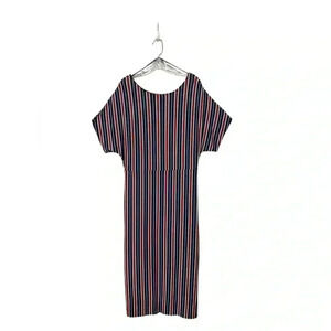 Elegant plus-size maxi dress with a timeless striped pattern. This dress features a flattering vertical stripe design in classic colors, short sleeves for a versatile look, and a relaxed fit that gracefully skims the body. Ideal for both casual outings and semi-formal occasions, this piece offers comfort and style in a full-length silhouette. Michel Studio Collection by Addition Elle. Size X (between XL & 1X) / Navy, Red & White. New π·οΈ / π