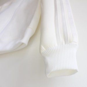 Brand new without tag! Stunning all white Adidas Neo cropped jacket with frontal floral ribbed pattern. Signature Adidas three lines down each sleeve. Elastic collar, waistband and cuffs. Two side pockets, two inside pockets and frontal zipper opening. Made with very "cushion like" fabric resulting in a very warm and comfortable garment. Size XS. In pristine condition. No stains, scratches, rips or holes. No damage whatsoever.