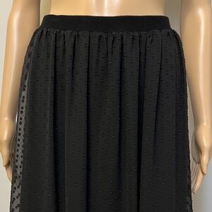 NWOT Adrianna Papell Swiss Dot Sheer Layered Knit Midi Skirt in Black Size M