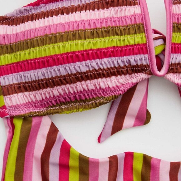 NWOT Aerie multicoloured striped smocked bandeau one piece swimsuit with cutouts