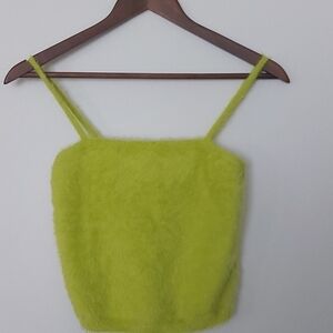NWOT Alice + Olivia Luetta Fuzzy Square Neck Tank Spaghetti Strap Cropped Size Medium
