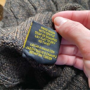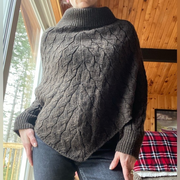 NWOT Alpaca Peru One Size Cable Knit Cowl Neck Poncho Sweater Dark Brown Wool