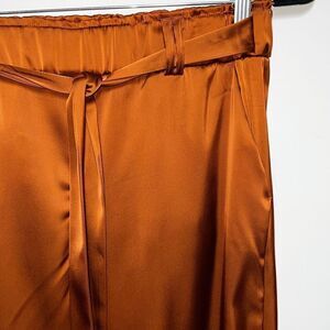 NWOT Anthropologie Joie Palazzo Wide Leg satin Rustic Orange Pants with Tie Sz S