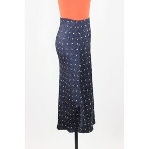 NWOT Aritzia BABATON Navy Blue Moon Printed Satin Midi Slip Skirt, Size 00