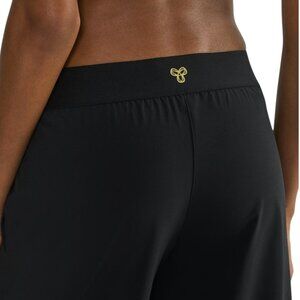 These are mid-rise track pants with a relaxed fit, elastic waist and inseam pockets. They're made from soft, lightweight stretch fabric that's sweat-wicking and quick-drying. This fabric is made from recycled polyester.