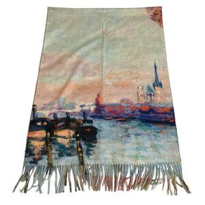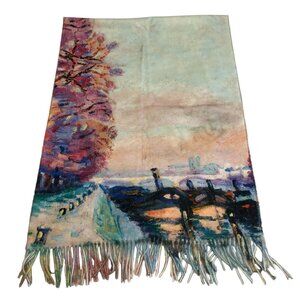 NWOT Art Painting Impressionism Viscose Scarf Cozy Soft Pastel Mint Green