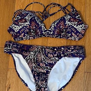 Athleta S Aqualuxe-Luxuriosly Purple Paisley-like, but almost a floral-like pattern... Bikini Bottom + Top Swimsuit 2 Piece Set