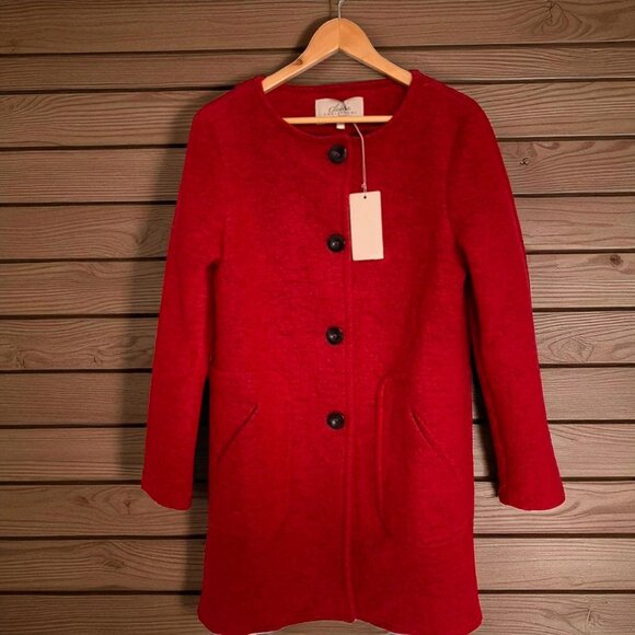 NWOT Autumn Fall Red WOOL Blend MADE IN ITALY Overcoat Jacket Sz M