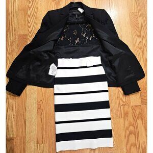 Beautiful skirt suit with lace accent on the jacket/blazer and buttery smooth black/white skirt that is gartered at the waist and entirely stretchy