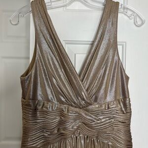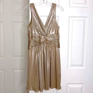 NWOT BCBGMAXAZRIA Metallic Gold Pleated Sleeveless V-neck Dress M