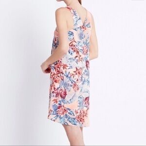 This tropical print dress has vacation written all over it. The easy fit lends itself nicely to a full day of island adventures. V-neckline Sleeveless A-line silhouette Hits above the knee. Allover signature Tropicalia print.