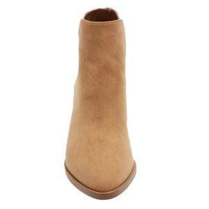 Textured in buttery soft faux suede, this back-zip bootie features notched sides and a lofty block heel.