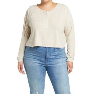 NWOT BP Long Sleeve Crop Henley in Beige Oatmeal Light Heather (1X)