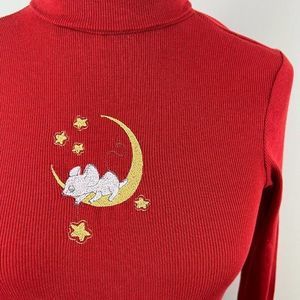 NWOT BP Red Mouse Moon Graphic Ribbed Turtle Neck Long Sleeve Shirt (XS)