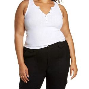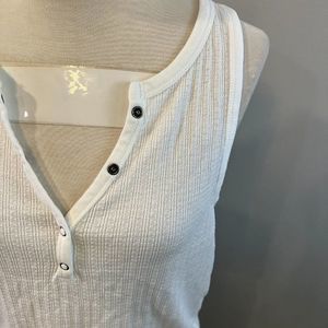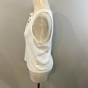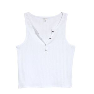 Soft ribbing brings shapely texture to this cool cropped henley tank that's ideal for layering or wearing alone. Snap half-placket Scoop neck 98% cotton, 2% spandex Machine wash, tumble dry Imported Women's Clothing