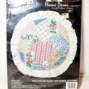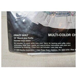 NWOT, BUCILLA 14" Home Decor accent pillow, counted cross stitch with ruffle