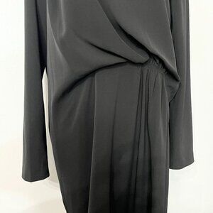 BY MALENE BIRGER BLACK ACARMAR GATHERED CREPE DRESS, By Malene Birger black Acarmar dress- Crepe- Gathered draped panels, fully lined- Concealed hook and zip fastening at shoulder. Perfect formal chic dress for funerals, church, work, date, business office party and more. Go with heels or peep toe to keep it high class and curated.