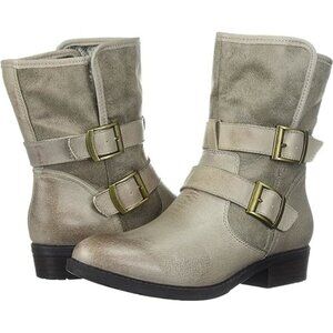 NWOT never worn Baretraps Yoshie taupe khaki tan leather faux fur cold weather boots