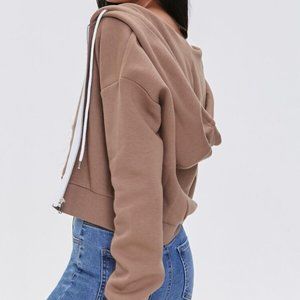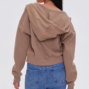 Details A fleece zip-up hoodie featuring contrast trim, drawstring hood, long sleeves, and a zip-up front.