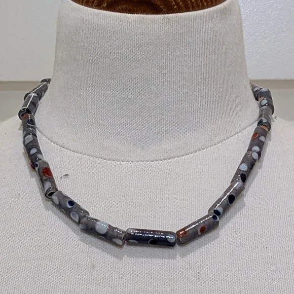 NWOT Beckwoman 18" Hand Blown Grey Glass Bead Necklace