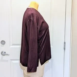 NWOT Beckwoman XL Oxblood Embroidered Double Button Collar Boho Tunic Blouse