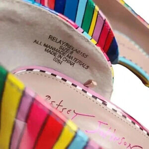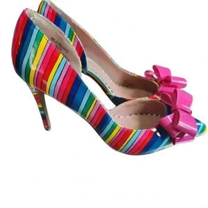 NWOT Betsey Johnson Relay Rainbow Striped Pink Bow Stiletto Pumps Heels Size 8