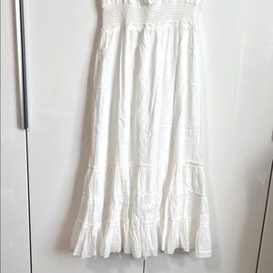NWOT Betsey Johnson White Cotton Maxi Dress Lined Smocking Waist, Size L