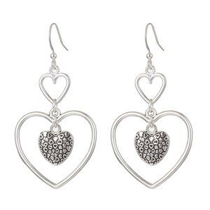 Heart Dangle Earrings, Silver plated Brass Earrings, Hearts