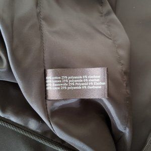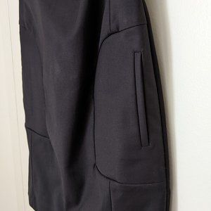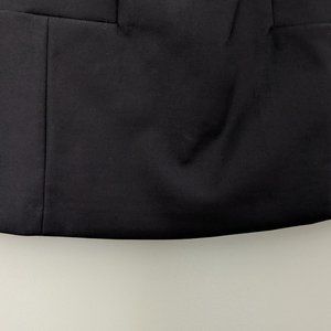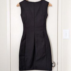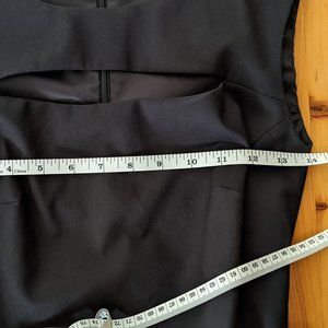 This sleeveless little black dress is fully lined with a hidden zipper up the back. It features two front pockets (still stitched closed) and a cut out above the bust. It was purchased new and altered to fit me, but then I never wore it. Originally size EU32 (US2), altered to a US0 fit. See measurements below.
