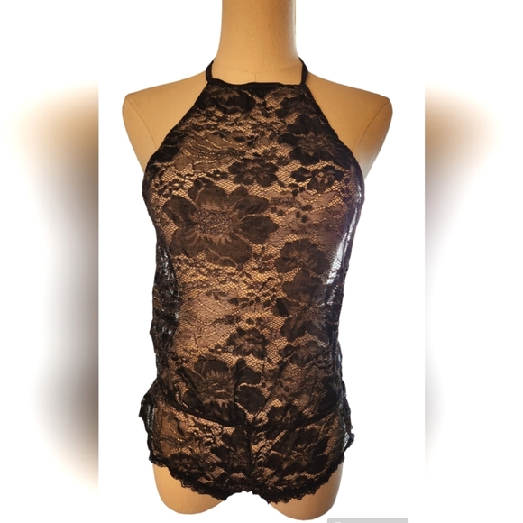 NWOT Black Lace with Gold High Neck Teddy