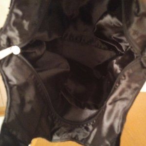 Plush thick straps; zipper closure; black satin lining; 1 interior pocket.