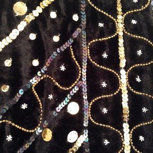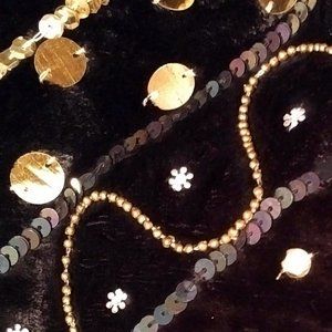 NWOT Black Velvet Shoulder Bag/Tote, Gold Sequins & Beads