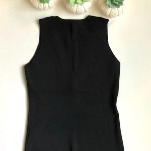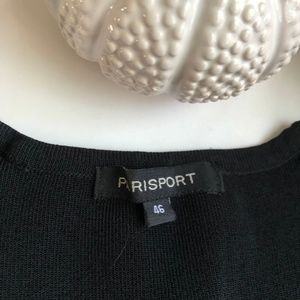 NWOT Parissport Black top for women with exquisite beading, sequine detail along the v-neck in front.