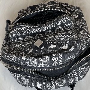 NWOT Black & White Print Purse With Detachable Crossbody Chain Strap. Loop At Back To Secure Purse To Belt For Hands Free Carrying. One Large Open Compartment. One Smaller, Front Zippered Compartment. Canvas Type Material. Measurements As Follows;