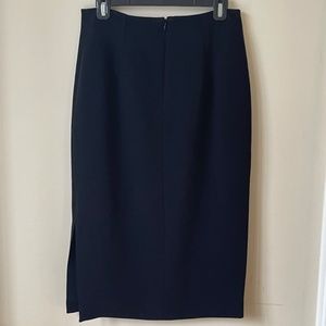 Louden black crepe pencil skirt with a 10” slit on the left. This is a very nice classic skirt. It is lined and drapes really well. NWOT Never worn because it is too big. Hoping to give it a nice home.