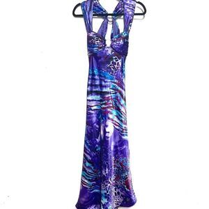 NWOT Blondie Nites Purple Animal Print Long Prom Gown SIZE 3