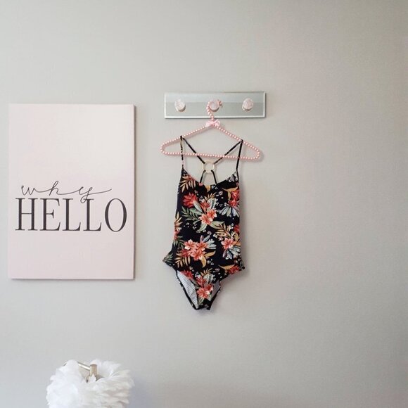 NWOT never worn Body Glove black and multicoloured floral tank one piece swimsuit with ring detail