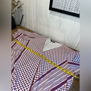 This BloomChic top features a striking geometric and chevron print in shades of burgundy and white, styled with a flattering V-neckline and short sleeves. The soft, stretch-infused fabric (98% polyester, 2% spandex) provides comfort and ease, perfect for dressing up or down. Marked as US size 18-20 / EU 48-50.