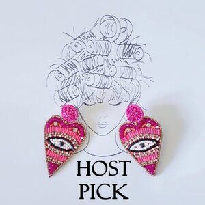 Pinks, purple, white, black and gold beaded drop heart shaped with evil eye motif