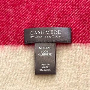 Charter Club’s 100% Cashmere scarf is classic with a twist in a large block plaid of Red, Pinks, Greys, and Off-White. Soft and Luxurious. Perfectly sized for everyday wear at 10” Wide and 62” Long with a 3” Twisted Fringe. Pristine condition, no flaws. Original price $120. Perfect Gift (for yourself?)