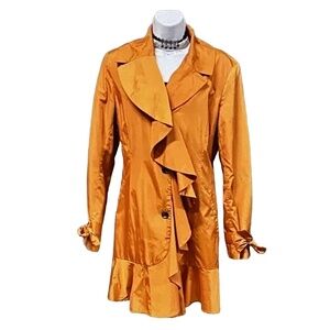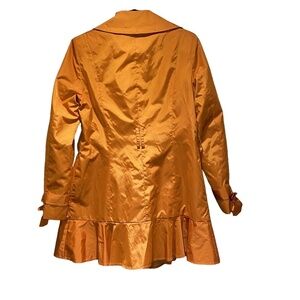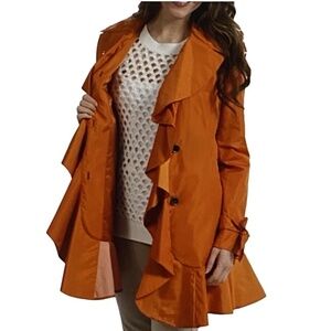NWOT COLE HAAN Tangerine Orange Ruffle Flirty Trench Rain Coat Retro Designer M